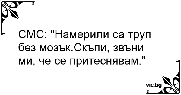 СМС: "Намерили са труп без мозък.Скъпи, звъни ми, че се притеснявам."