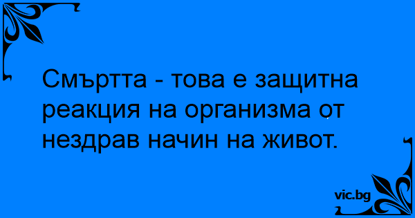 Смъртта - това е защитна реакция на организма от нездрав начин на живот.<br />