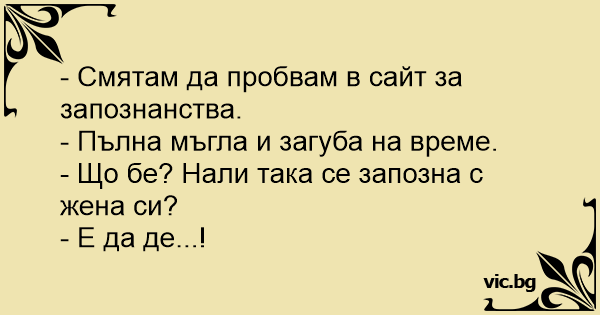 - Що бе? Нали така се запозна с жена си?