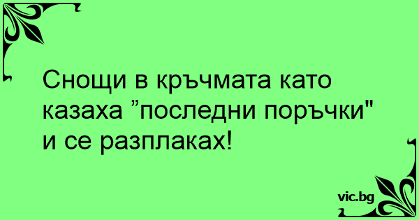 Снощи в кръчмата като казаха ”последни поръчки" и се разплаках!