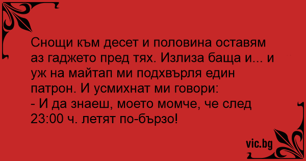 - И да знаеш, моето момче, че след 23:00 ч. летят по-бързо!