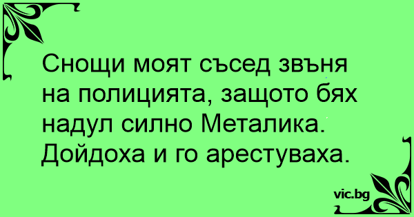 Снощи моят съсед звъня на полицията, защото бях надул силно Металика.