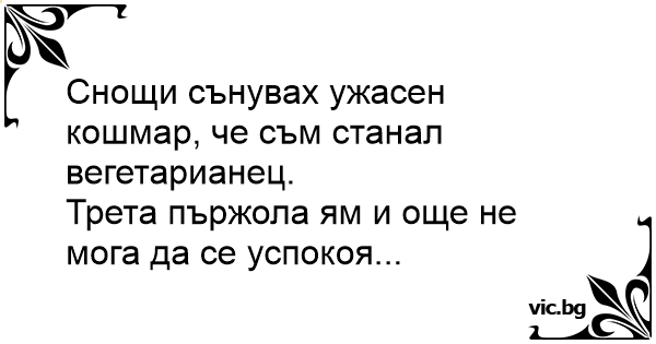 Снощи сънувах ужасен кошмар, че съм станал вегетарианец.