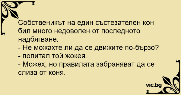 Собственикът на един състезателен кон бил много недоволен от последното надбягване.