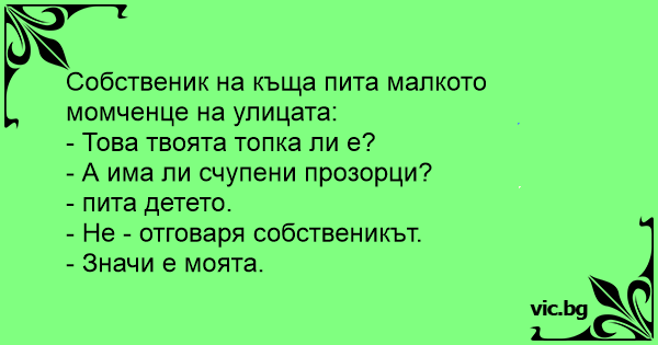 • Вицове от Facebook от нашата страница https://www.facebook.com/www.vic.bg