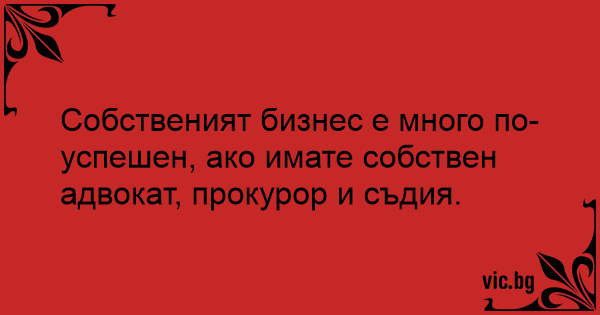 Собственият бизнес е много по-успешен, ако имате собствен адвокат, прокурор и съдия.