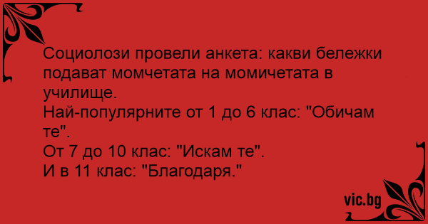 Социолози провели анкета: какви бележки подават момчетата на момичетата в училище.