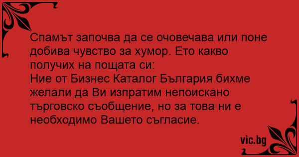 Спамът започва да се очовечава или поне добива чувство за хумор. Ето какво получих на пощата си: