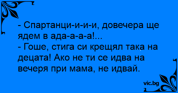 - Гоше, стига си крещял така на децата! Ако не ти се идва на вечеря при мама, не идвай.