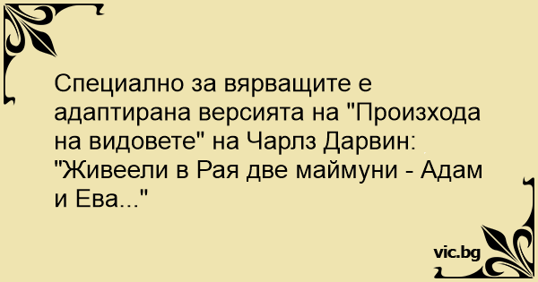 "Живеели в Рая две маймуни - Адам и Ева..."