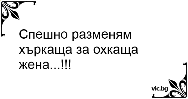 Спешно разменям хъркаща за охкаща жена...!!!