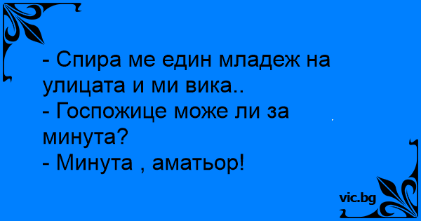 - Спира ме един младеж на улицата и ми вика..
