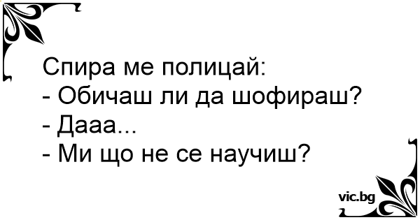 Спира ме полицай: - Обичаш...