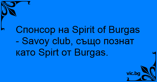 Спонсор на Spirit of Burgas - Savoy club, също познат като Spirt от Burgas.