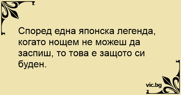 Според една японска легенда, когато нощем не можеш да заспиш, то това е защото си буден.