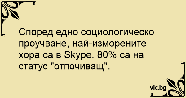 Според едно социологическо проучване, най-изморените хора са в Skype. 80% са на статус "отпочиващ".