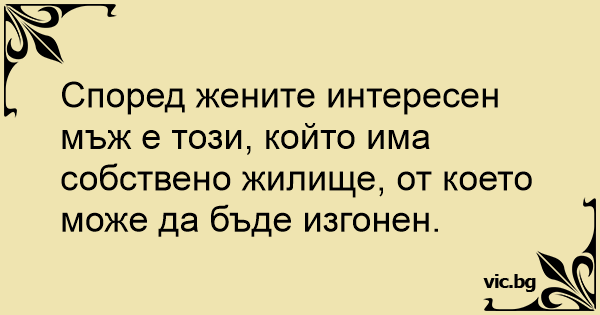 Според жените интересен мъж е този, който има собствено жилище, от което може да бъде изгонен.