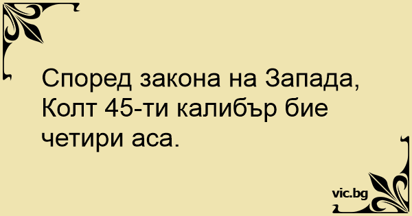 Според закона на Запада, Колт 45-ти калибър бие четири аса.