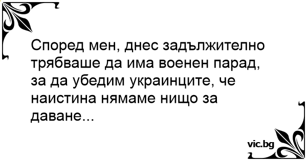 Според мен, днес задължително трябваше да има военен парад, за да убедим украинците, че наистина нямаме нищо за даване...
