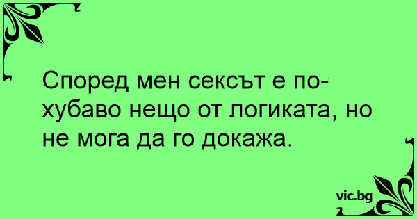 Според мен cekcъt е по-хубаво нещо от логиката, но не мога да го докажа.