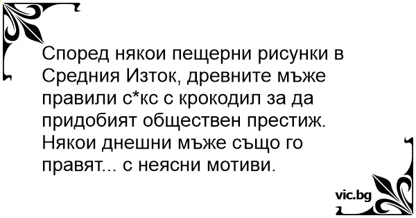Според някои пещерни рисунки в Средния Изток, древните мъже правили cekc с крокодил за да придобият обществен престиж.