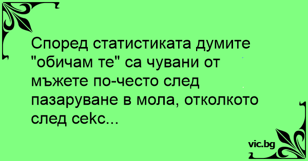 Според статистиката думите "обичам те" са чувани от мъжете по-често след пазаруване в мола, отколкото след cekc...