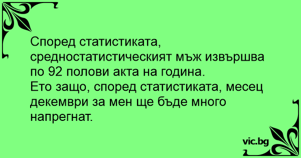 Ето защо, според статистиката, месец декември за мен ще бъде много напрегнат.