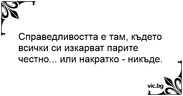 Справедливостта е там, където всички си изкарват парите честно... или накратко - никъде.