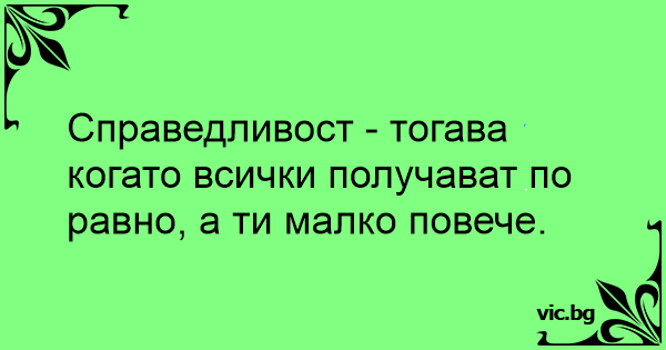 Справедливост - тогава когато всички получават по равно, а ти малко повече.