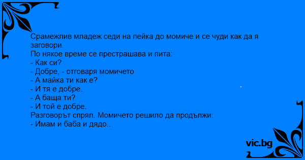 • Вицове от Facebook от нашата страница https://www.facebook.com/www.vic.bg