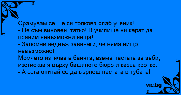 - Не съм виновен, татко! В училище ни карат да правим невъзможни неща!