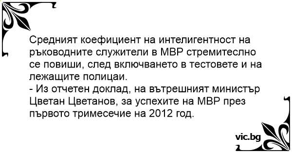 Средният коефициент на интелигентност на ръководните служители в МВР стремитеслно се повиши, след включването в тестовете и на лежащите полицаи.