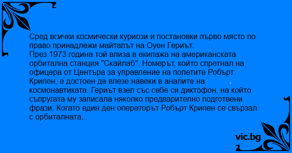 Сред всички космически куриози и постановки първо място по право принадлежи майтапът на Оуен Гериът.
