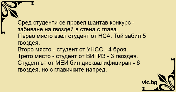 Вицове от Facebook от нашата страница https://www.facebook.com/www.vic.bg