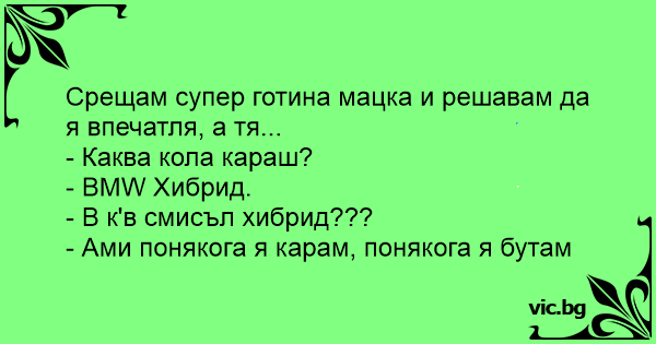 • Вицове от Facebook от нашата страница https://www.facebook.com/www.vic.bg