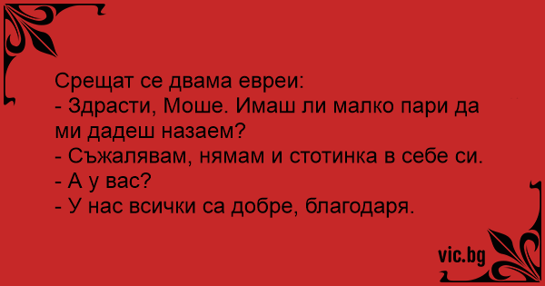 - Здрасти, Моше. Имаш ли малко пари да ми дадеш назаем?
