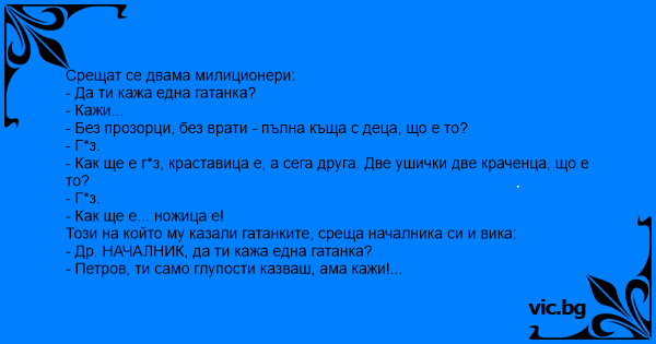 • Вицове от Facebook от нашата страница https://www.facebook.com/www.vic.bg