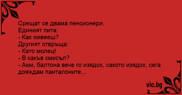 Срещат се двама пенсионери.