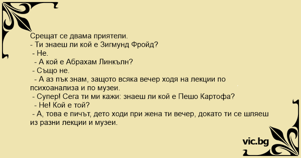- Супер! Сега ти ми кажи: знаеш ли кой е Пешо Картофа?