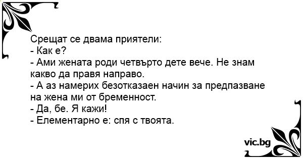 • Вицове от Facebook от нашата страница https://www.facebook.com/www.vic.bg