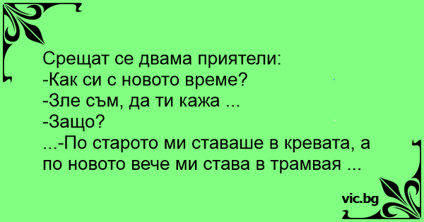 ...-По старото ми ставаше в кревата, а по новото вече ми става в трамвая ...