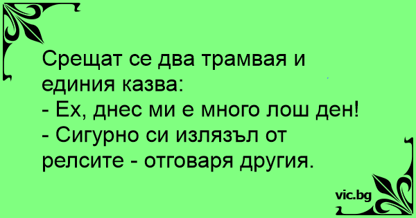 Срещат се два трамвая и единия казва: