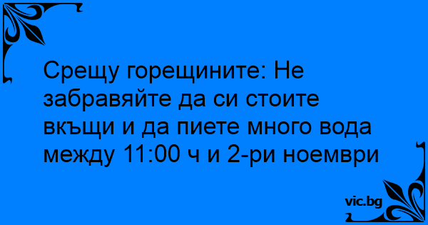 Срещу горещините: Не забравяйте да си стоите вкъщи и да пиете много вода между 11:00 ч и 2-ри ноември
