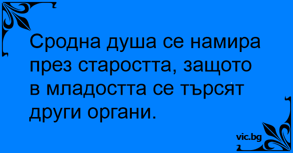 Сродна душа се намира през старостта, защото в младостта се търсят други органи.