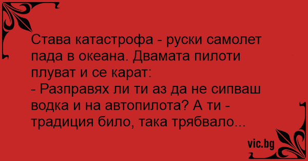 - Разправях ли ти аз да не сипваш водка и на автопилота? А ти - традиция било, така трябвало...