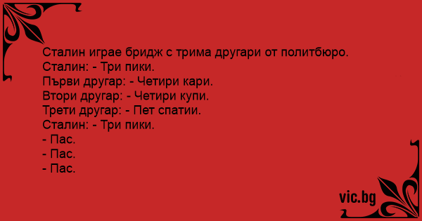 Втори другар: - Четири купи.