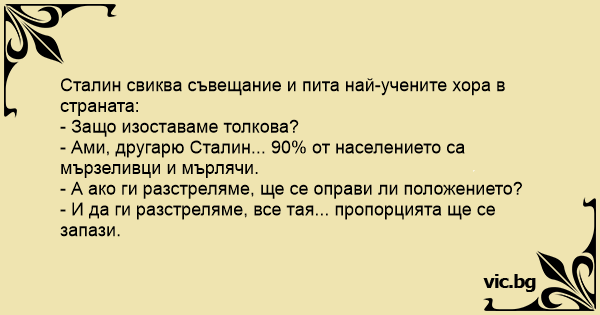 - Ами, другарю Сталин... 90% от населението са мързеливци и мърлячи.