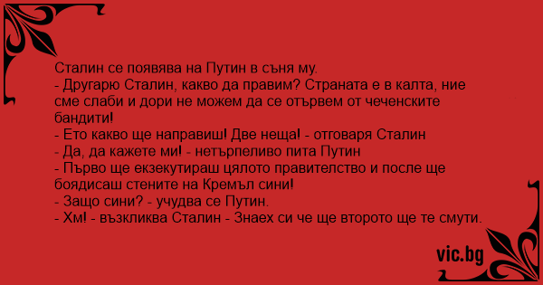 - Другарю Сталин, какво да правим? Страната е в калта, ние сме слаби и дори не можем да се отървем от чеченските бандити!