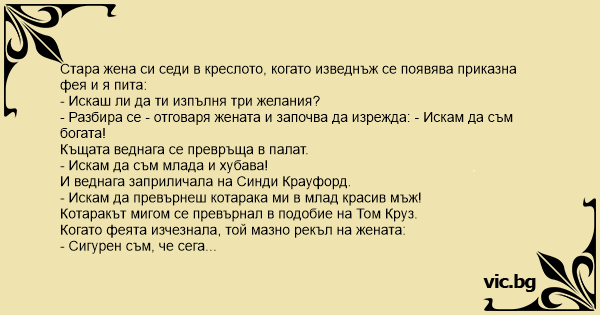 - Разбира се - отговаря жената и започва да изрежда: - Искам да съм богата!