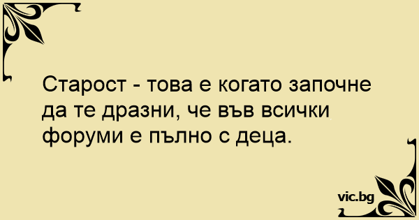Старост - това е когато започне да те дразни, че във всички форуми е пълно с деца.